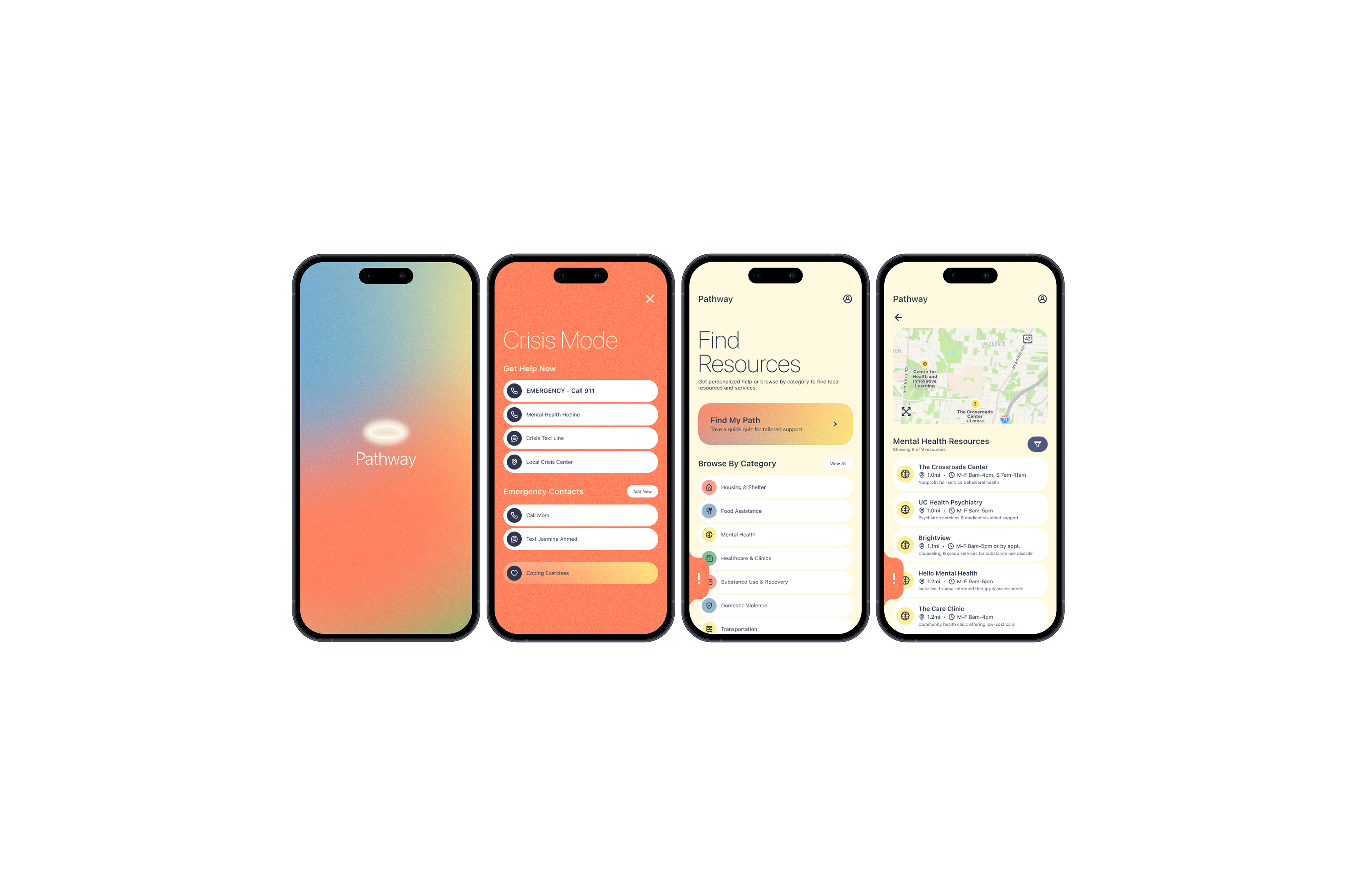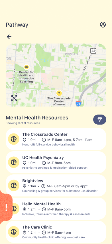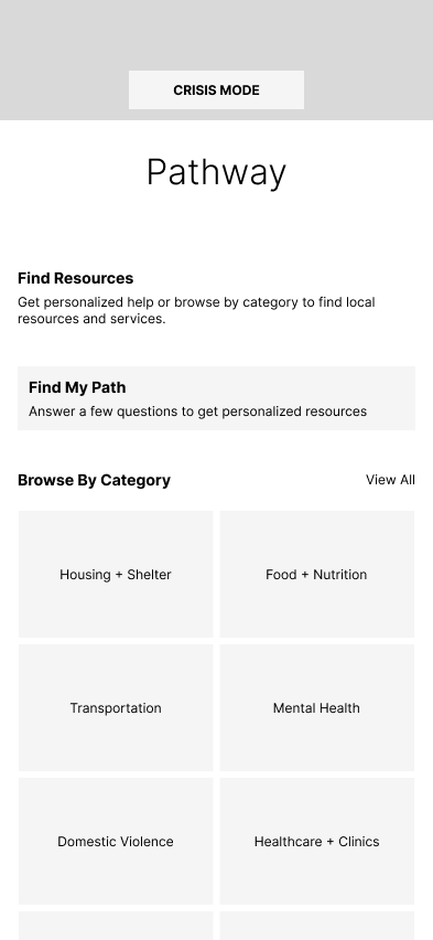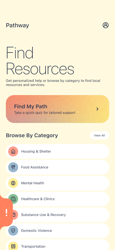 I was tasked with designing and prototyping a mobile app that demonstrated a clear user flow, visual hierarchy, and interaction design principles while solving a specific user need. Inspired by my nonprofit experience, I chose to create an app that would reduce barriers for people seeking local resources.