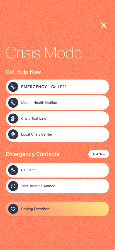 I wanted to evoke feelings of tranquility and warmth to put frazzled users at peace when interacting with this product. Modern visuals like soft gradients and simple shapes appeal to younger generations and encourage them to set aside the stigma of receiving help.